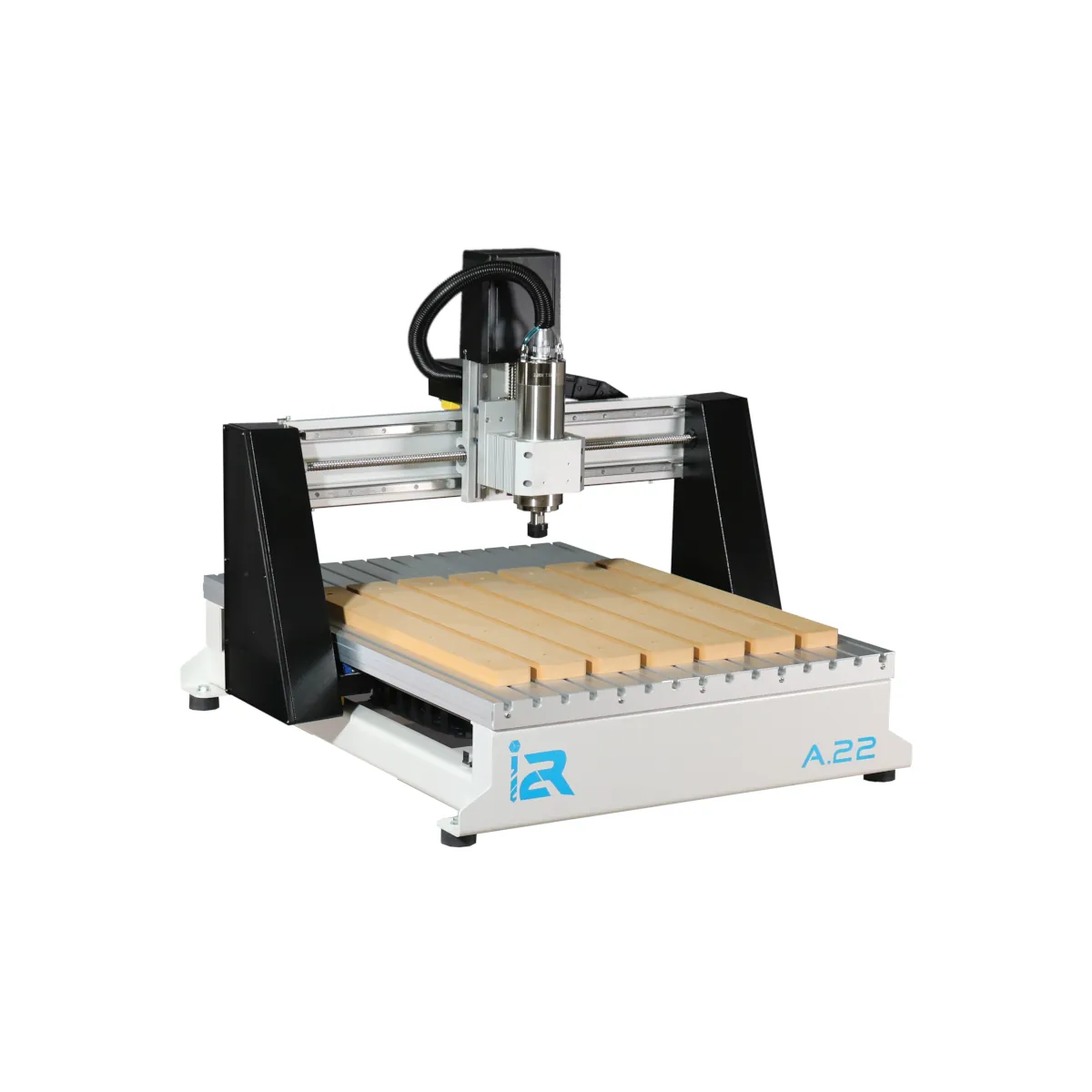 The i2R A-Series Series CNC router is designed to be an affordable professional CNC router platform in a small desktop format out of the box. Powerful electro spindle performance, and rotary machining capability in a compact industrial machine. Our A-Series CNC routers have a full 150mm Z travel capacity, and a quiet yet powerful 2.2kW / 3HP electro-spindle with integrated liquid cooling system. Each A-Series machine is prewired to accept our optional Rotary Kit. The i2R A-Series CNC routers also offer precision ball screws, prismatic guides, a robust steel frame, and interlocking aluminium table. In addition, the integrated MDF spoil boards promise you the all precision you need, since they can easily be milled flat for a true perpendicular surface to the spindle.